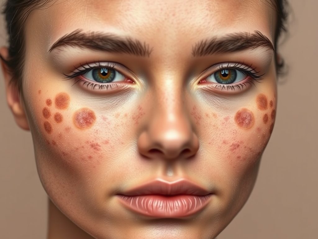 - Melasma (ostuda): Symetryczne, rozległe i nieregularne plamy o barwie jasnobrązowej do brunatnej, najczęściej występujące na twarzy, zwłaszcza na czole, policzkach i górnej wardze. Często związane z hormonami i ekspozycją na promieniowanie UV.